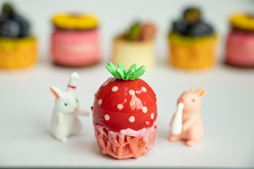 龙井磨制成粉搭配日式抹茶,奶油烧汁制成双重清新的茶味香缇奶油,灌入酥香泡芙,一个个憨态可掬的龙井抹茶泡芙应运而生。草莓白兰地慕斯,新鲜草莓打成泥配上白兰地、奶油制成慕斯,丰富口感的同时还原精心雕琢的草莓外形。彩虹青瓜三文鱼卷肉质鲜嫩且汁水丰富的三文鱼卷,咀嚼之下伴随着青瓜的芬香扑鼻而来,奶油芝士的醇厚融入三文鱼的肉质中馥郁且清香。